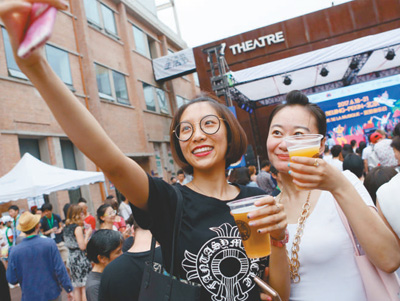 2017年6月18日,游客在“77文創(chuàng)”美術(shù)館園區(qū)舉辦的第二屆文創(chuàng)生活節(jié)上合影。新華社記者 高靜 攝