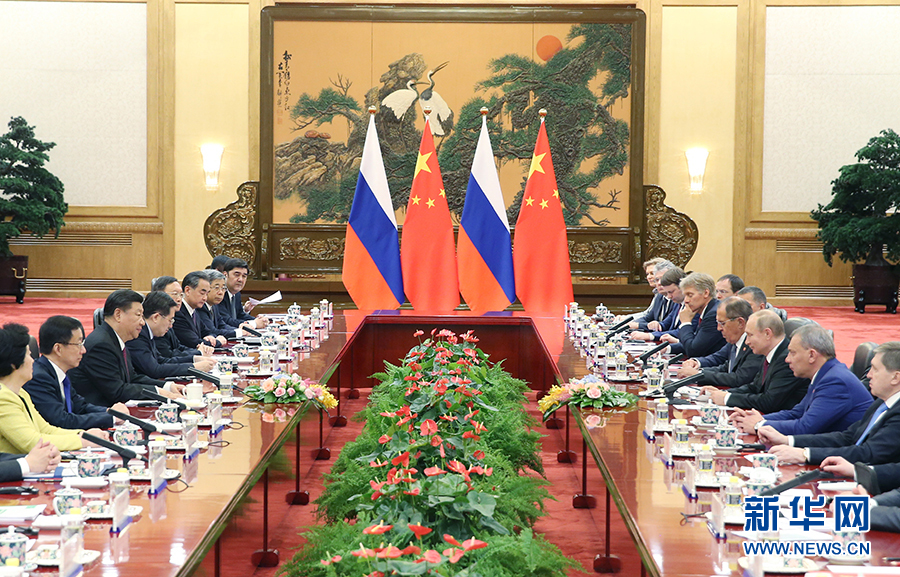 6月8日,國家主席習近平在北京人民大會堂同俄羅斯總統普京舉行會談。 新華社記者 姚大偉 攝