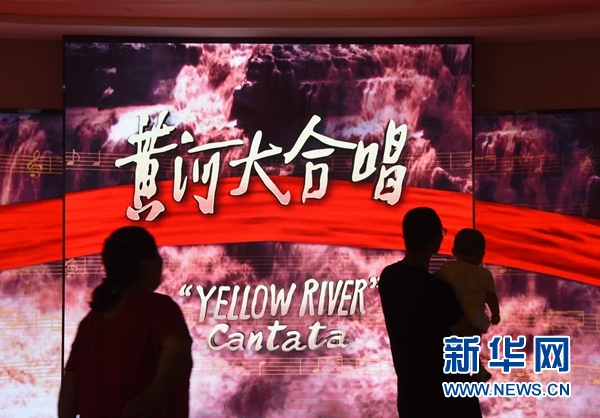 7月7日,觀眾在聆聽(tīng)展覽現(xiàn)場(chǎng)播放的《黃河大合唱》。