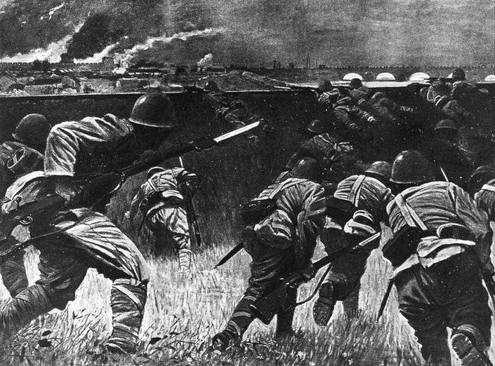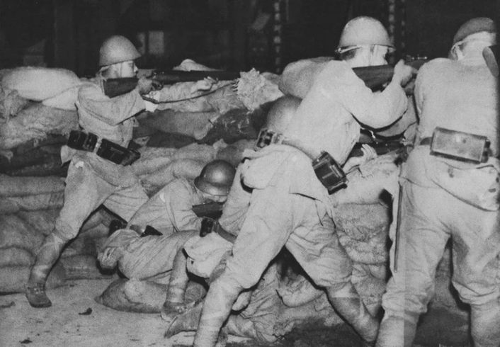 中國軍隊在盧溝橋奮起抗擊日軍的進攻