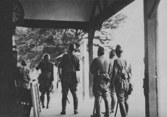 日軍包圍宛平縣城,城內處于備戰狀態的中國軍隊守軍。
