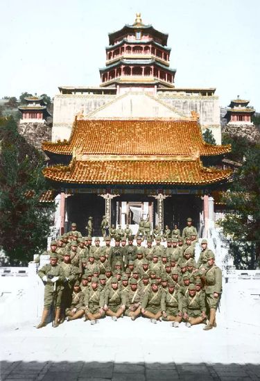 日軍在北平頤和園佛香閣留影(數字彩色復原技術)