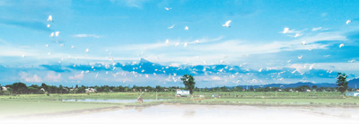 7月8日,安徽省廬江縣泥河鎮(zhèn)境內(nèi)的國家級稻漁共養(yǎng)示范區(qū)內(nèi),白鷺在藍(lán)天下飛翔。左學(xué)長攝(人民視覺)