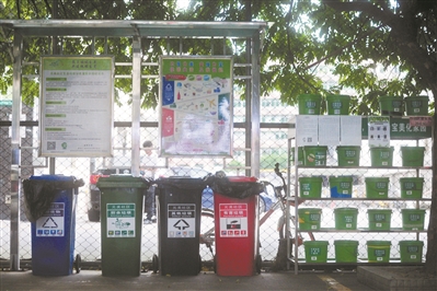 目前深圳已實(shí)施了小區(qū)垃圾分類1.0版和2.0版。深圳市城管局副巡視員楊雷介紹,1.0版是指分類設(shè)施已進(jìn)入小區(qū),同時(shí)在小區(qū)定期開展資源回收日等活動(dòng)。2.0版也就是“僑香村模式”,即是分類投放點(diǎn)在樓下集中設(shè)置,除此之外再無垃圾桶;每天垃圾投放的高峰時(shí)段,有志愿者在現(xiàn)場(chǎng)督導(dǎo)。