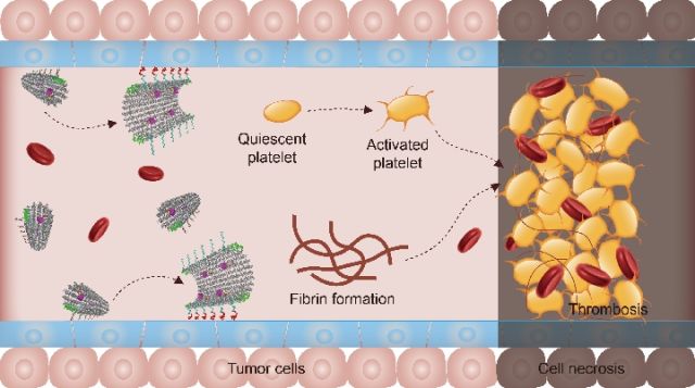 聶廣軍說,納米機(jī)器人被注射進(jìn)體內(nèi)后,只有腫瘤才具有能打開“鎖”的“鑰匙”。“開鎖”后,“殺手”凝血酶被釋放出來,會(huì)召集來血小板、纖維蛋白原,幾個(gè)小時(shí)內(nèi)在腫瘤血管形成巨大血栓,切斷血液供應(yīng),從而“餓死”腫瘤。