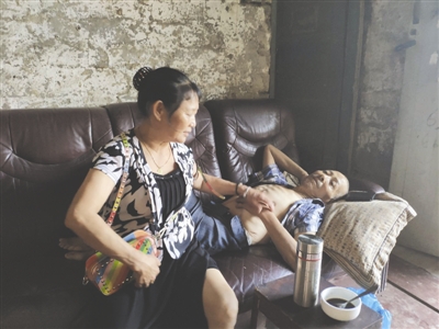 8月17日中午,李子恒躺在家里的沙發上,蜷縮著右腿,瘦弱得能清晰看到胸口上的肋骨。旁邊的小凳子上放著剛喝完藥的碗,凳子下方是預備好的垃圾桶,以防隨時嘔吐。老伴高金珍告訴成都商報記者,李子恒不大能吃東西了,吃什么吐什么,說話也已經口齒不清。8月6日從醫院回到家,“醫生說,可能也就剩一個月左右的時間了。”