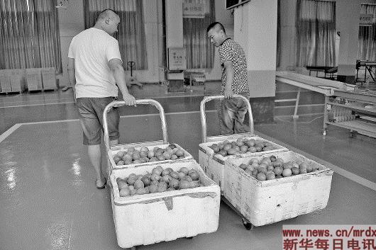 分揀好的“網紅產品”百香果經由冷鏈分揀中心送往全國各地。(王發祥攝)