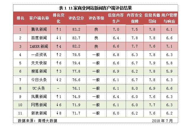 8月24日,中國互聯(lián)網(wǎng)絡(luò)信息中心CNNIC發(fā)布《新聞客戶端信息生態(tài)指數(shù)2018年7月榜》。評估結(jié)果顯示,商業(yè)網(wǎng)站新聞客戶端整體生態(tài)一般,3家商業(yè)網(wǎng)站新聞客戶端達到良好等級,信息傳播導(dǎo)向及用戶管理響應(yīng)指數(shù)進步明顯,內(nèi)容安全保障指數(shù)有待提升。