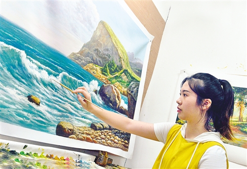 江西省黎川縣油畫創意產業園,畫師在繪制長江油畫。近年來,該縣大力發展以油畫為主的文化產業,油畫創意產業園年創產值1.2億元。 王武輝攝