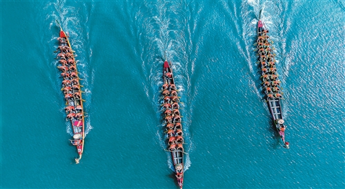 安徽省池州市舉辦的龍舟賽。龍舟競渡是長江流域影響最大、流傳最廣的民俗之一,體現了我國悠久的歷史文化傳承和百舸爭流、勇往直前的競進精神。 饒 頤攝