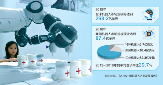 在2018世界機器人大會上,中國電子學會發布的《2018中國機器人產業發展報告》(以下簡稱《報告》)顯示,2018年全球機器人市場規模將達到298.2億美元,其中工業機器人占將近六成。