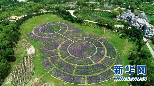 在寧夏石嘴山大武口發電廠第二排灰場上建起的石嘴山人民公園(7月31日無人機拍攝)。 新華社記者 王鵬 攝