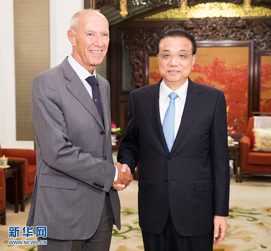 8月28日,國(guó)務(wù)院總理李克強(qiáng)在北京中南海紫光閣會(huì)見來(lái)華出席“一帶一路”知識(shí)產(chǎn)權(quán)高級(jí)別會(huì)議的世界知識(shí)產(chǎn)權(quán)組織總干事高銳和與會(huì)代表。新華社記者黃敬文攝