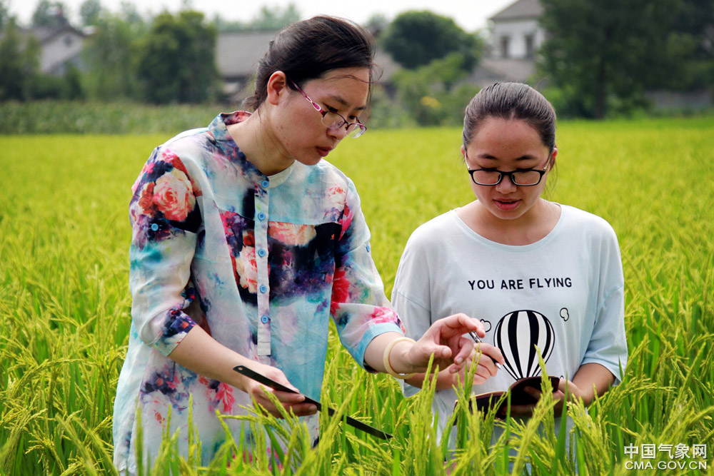 7月18日以來,湖北省宜昌市水稻主產(chǎn)區(qū)連續(xù)10天出現(xiàn)35℃以上高溫天氣。為做好高溫干旱天氣水稻生長氣象服務(wù),宜昌市氣象局農(nóng)氣服務(wù)人員深入枝江市問安鎮(zhèn)仙女村和關(guān)廟山村等地,實(shí)地調(diào)查當(dāng)前水稻生長狀況并向稻農(nóng)了解氣象服務(wù)需求。孟芳/文 高姝麗/圖