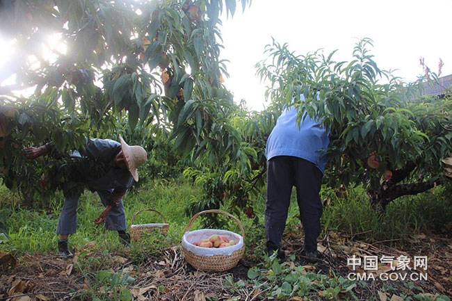 7月20日,為應(yīng)對臺風(fēng)“安比”,上海市金山區(qū)農(nóng)業(yè)部門組織農(nóng)戶搶收蟠桃和葡萄。顧秀龍 供圖
