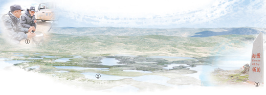 圖①:三江源國(guó)家公園保護(hù)人員在巡山途中。記者 姜峰 攝