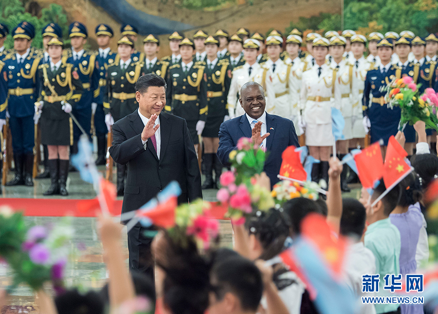 8月31日,國家主席習近平在北京人民大會堂同博茨瓦納總統馬西西舉行會談。這是會談前,習近平在人民大會堂北大廳為馬西西舉行歡迎儀式。 新華社記者 李濤 攝