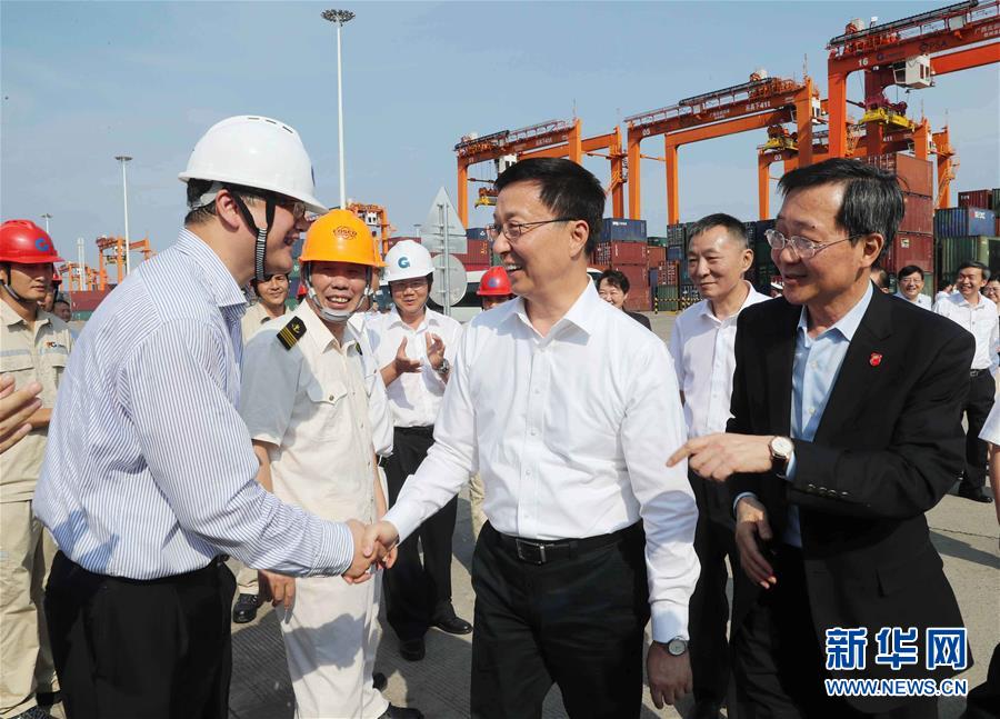 這是9月12日,韓正前往欽州保稅港區,考察南向通道建設。 新華社記者 劉衛兵 攝