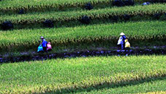 13日,廣東湛江廉江市,市民冒雨出行。羅暢 攝(人民視覺)