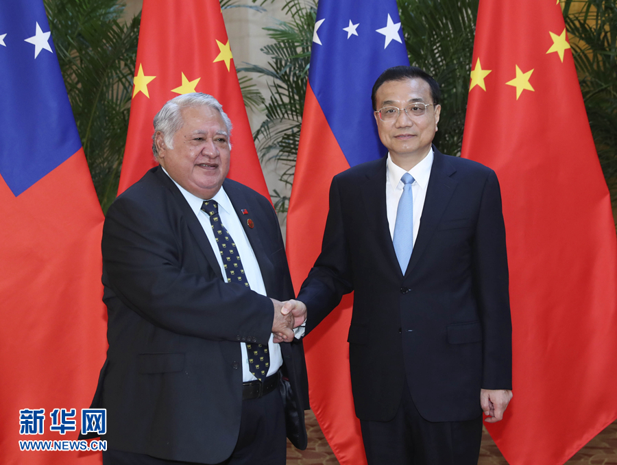 李克強表示,薩摩亞是最早同中國建交的太平洋島國之一。建交以來,雙邊關(guān)系取得長足發(fā)展。中方重視中薩關(guān)系,贊賞薩方長期堅定奉行一個中國政策,支持薩摩亞走符合本國國情的發(fā)展道路,加強同薩方團結(jié)合作。