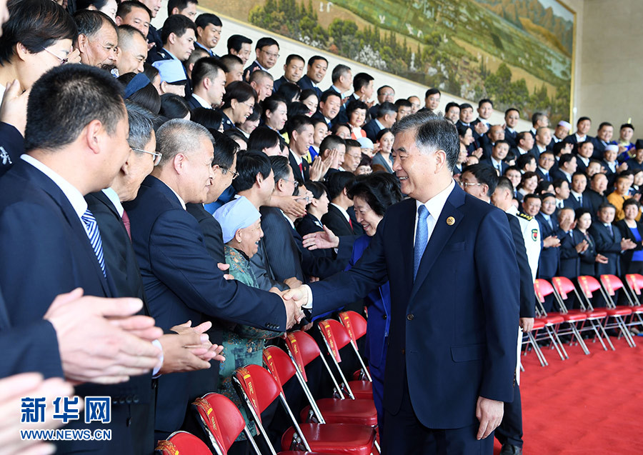 新華社銀川9月19日電(記者羅爭光、郁瓊源)中共中央政治局常委、全國政協主席、中央代表團團長汪洋19日下午在銀川悅海賓館會見了寧夏回族自治區離退休老同志和各族各界群眾代表,并與他們合影留念。?