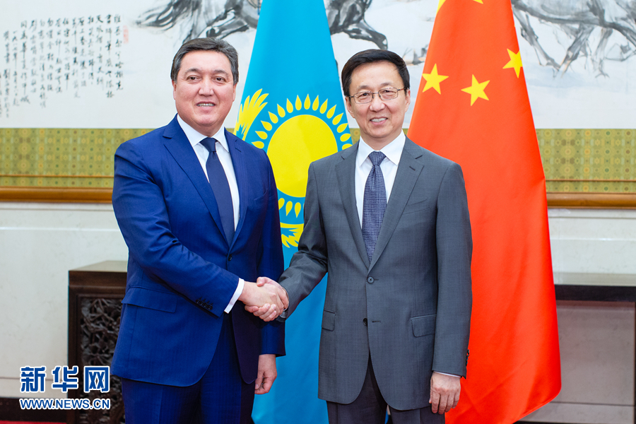 韓正表示,在兩國元首戰(zhàn)略引領(lǐng)下,中哈關(guān)系保持高水平運行,共建“一帶一路”合作成果豐碩。今年6月,兩國元首再次會晤,對兩國關(guān)系發(fā)展作出新的規(guī)劃和部署。雙方要全面落實兩國領(lǐng)導人重要共識,進一步加強發(fā)展戰(zhàn)略對接,深化產(chǎn)能、投資、經(jīng)貿(mào)、財金、能源、互聯(lián)互通等各領(lǐng)域合作,推動中哈全面戰(zhàn)略伙伴關(guān)系不斷邁上新臺階。
