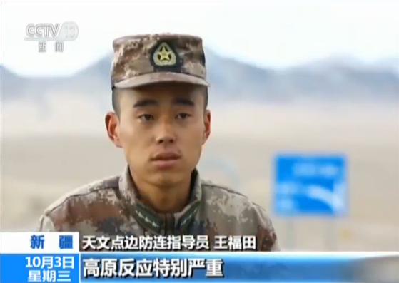 天文點(diǎn)邊防連指導(dǎo)員 王福田:第一次上山高原反應(yīng)特別嚴(yán)重,車剛到連隊(duì)就吐了,后面的幾天意識(shí)不是很清醒,連隊(duì)軍醫(yī)診斷出我腦水腫,緊急下送到醫(yī)療站,在那里治療,康復(fù)之后又返回來到這里。我們的新兵上來反應(yīng)特別嚴(yán)重的每年都有,但是我們主動(dòng)要求要放棄、要下去的,基本沒有。