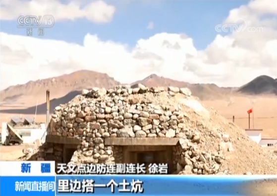 天文點(diǎn)邊防連副連長(zhǎng) 徐巖:2012年之前,守防官兵一直都是在上面住的地窩子,就是挖了個(gè)半地下的,然后旁邊拿石頭壘起來,頂上蓋一層鐵皮,里邊搭一個(gè)土炕,以前就住在那種環(huán)境,現(xiàn)在修這么個(gè)哨樓還是好多了。