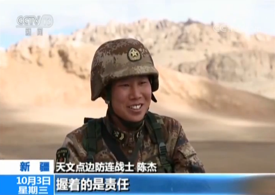 天文點(diǎn)邊防連戰(zhàn)士 陳杰:我們?cè)谶@地方待著,燃燒的是自己的青春,守候的確實(shí)是一種寂寞,肩負(fù)的是和平,握著的是責(zé)任。
