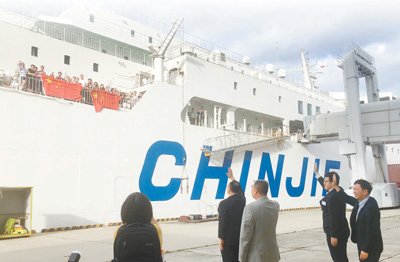 9月10日,中國(guó)駐大阪總領(lǐng)館工作人員把因臺(tái)風(fēng)滯留日本關(guān)西國(guó)際機(jī)場(chǎng)的部分中國(guó)旅客送上助其返鄉(xiāng)的“新鑒真”號(hào)。資料圖片