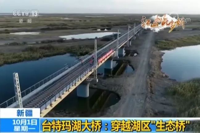 格庫鐵路臺特瑪湖特大橋工程位于世界第二大沙漠——塔克拉瑪干沙漠的腹地,設(shè)計(jì)長度24.5公里,是新疆庫爾勒到青海格爾木段鐵路的重要組成部分。大橋由中鐵一局于2014年開工建設(shè),目前已完成鐵路橋軌道鋪設(shè)。