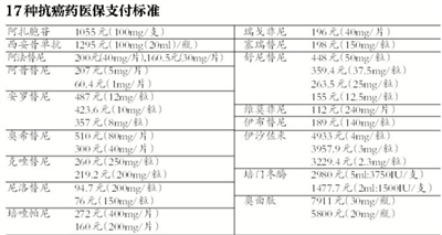 17種抗癌藥納入醫保目錄