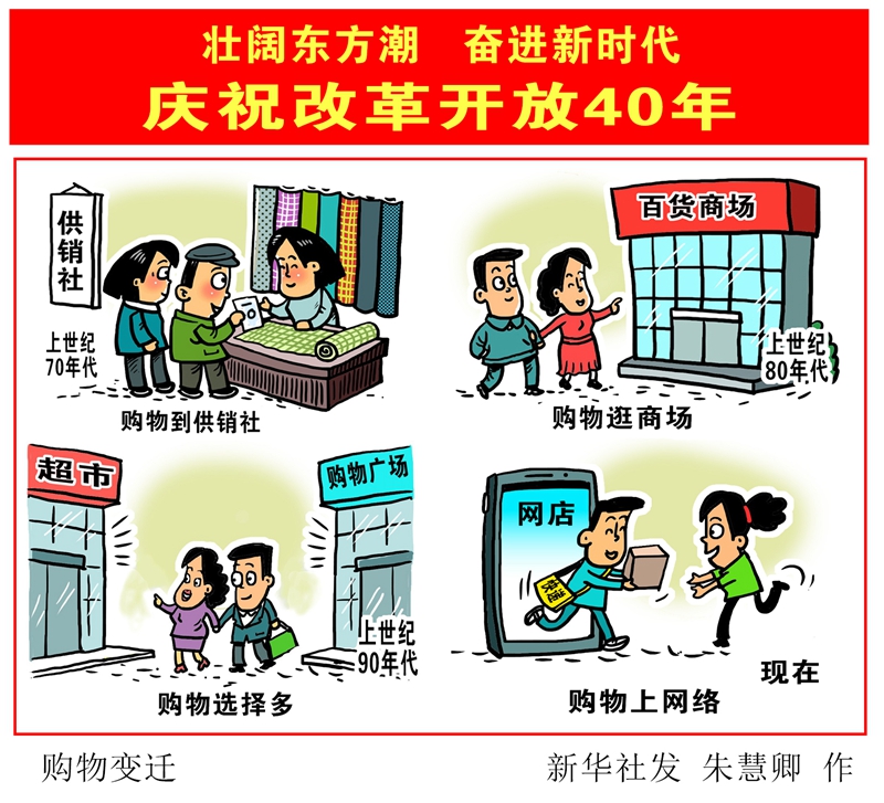 消費(fèi):上世紀(jì)70年代,購(gòu)物到供銷社;上世紀(jì)80年代,購(gòu)物逛商場(chǎng);上世紀(jì)90年代,購(gòu)物選擇多;如今,購(gòu)物上網(wǎng)絡(luò)。↓↓