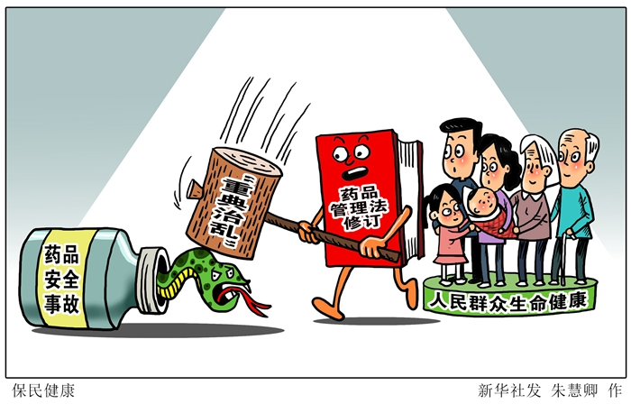漫畫(huà):保民健康 藥品管理法修正草案10月22日提請(qǐng)全國(guó)人大常委會(huì)審議,法律的修改為守住藥品安全底線(xiàn)、維護(hù)人民群眾生命健康,開(kāi)出了去疴的“猛藥良方”。 新華社發(fā) 朱慧卿 作