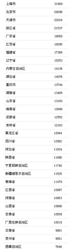 前三季度31省區市人均消費支出。來自國家統計局