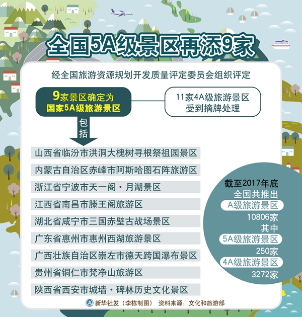 全國5A級(jí)景區(qū)再添9家 新華社發(fā) 李棟 制圖
