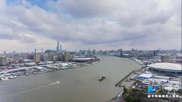 ↑大雪過后的黃浦江兩岸。新華網(wǎng) 吳愷 攝