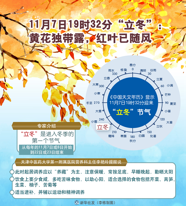 11月7日19時(shí)32分“立冬”:黃花獨(dú)帶露,紅葉已隨風(fēng) 新華社發(fā) 李棟 制圖