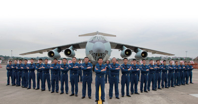 “昆侖雄鷹大隊”在裝備的伊爾—76飛機前舉行出征儀式。盧炳廣攝