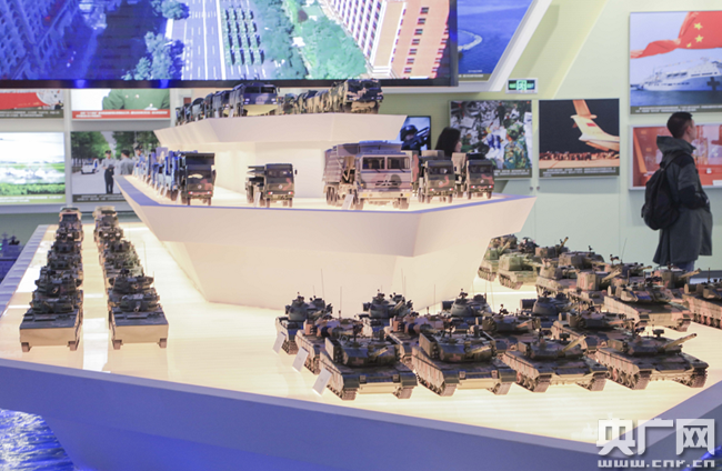 圖為各類軍事裝備模型。(央廣網記者 荊宇琦 攝)