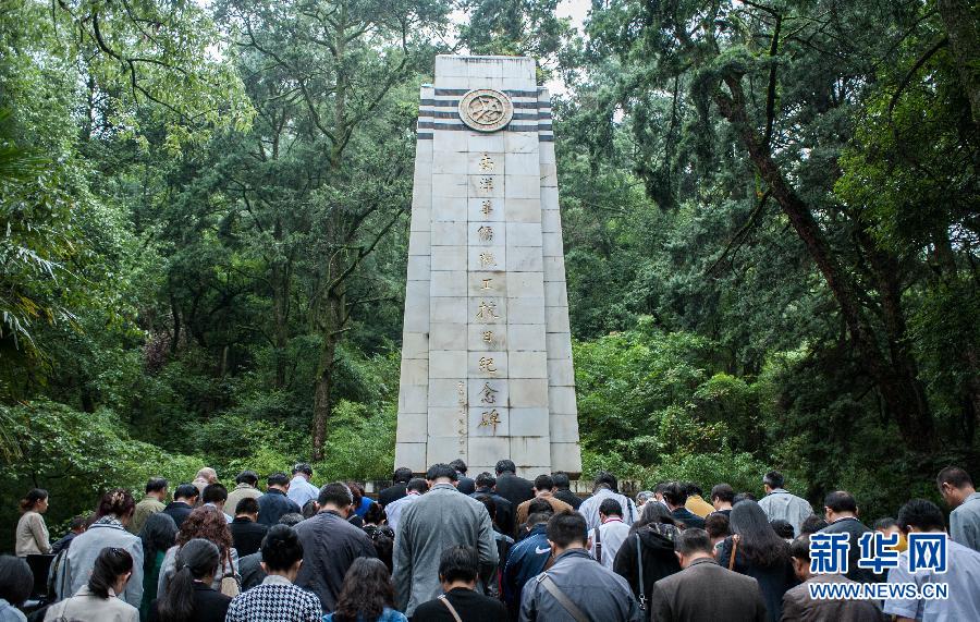 2015年9月8日,南洋華僑機工抗日紀念碑瞻仰活動在云南省昆明市西山森林公園舉行。這是參加活動的全體人員在南洋華僑機工抗日紀念碑前默哀。 新華社記者 呂帥 攝