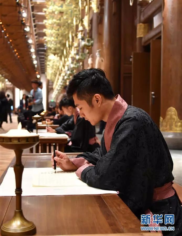 在2018中國(曲阜)國際孔子文化節(jié)上,傳統(tǒng)文化愛好者在展示傳統(tǒng)文化技藝。 新華社記者 徐速繪 攝