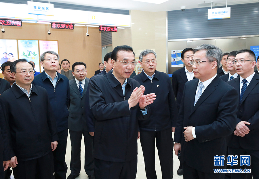 11月29日至30日,中共中央政治局常委、國務(wù)院總理李克強在江蘇南通、南京考察。這是11月29日,李克強在江蘇銀行南通崇川支行考察金融服務(wù)小微企業(yè)情況。 新華社記者 龐興雷 攝