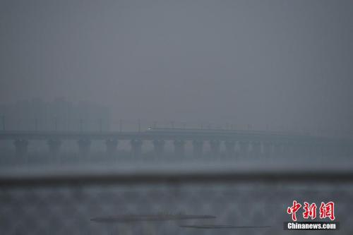 12月1日0時,北京市再啟動空氣重污染黃色預警,圖為一列高鐵在霧霾中經(jīng)過北京房山。 中新社記者 崔楠 攝