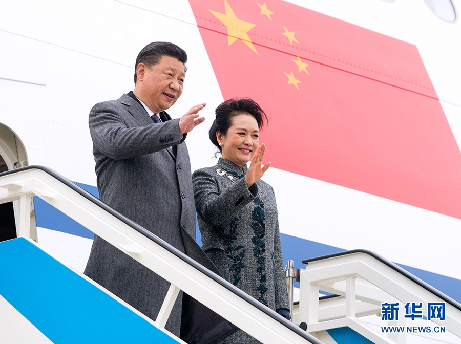 當習近平乘坐的專機進入葡萄牙領空時,2架葡萄牙空軍戰機升空護航。當地時間上午9時20分許,專機抵達里斯本國際機場。習近平和夫人彭麗媛步出艙門,葡萄牙外長席爾瓦等政府高級官員在舷梯旁熱情迎接。禮兵分列紅地毯兩側。