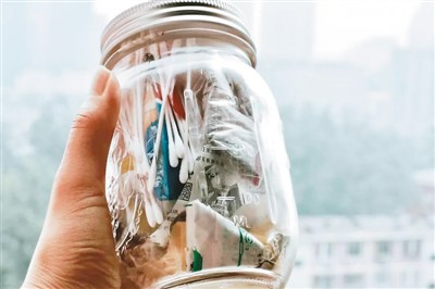 “當時,我想給自己一個挑戰,盡可能減少自己的生活垃圾。3個月的時間里,我們產生的生活垃圾,只有小小的2個杯子那么大的玻璃罐那么多?!庇嘣獙P者說道。