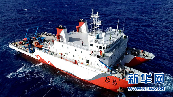 “沈括”號抵達馬里亞納海溝“挑戰(zhàn)者深淵”海域(12月10日攝)。 新華社記者 張建松 攝
