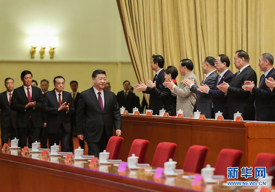 當習近平等領導同志進入會場,全場起立,熱烈鼓掌。