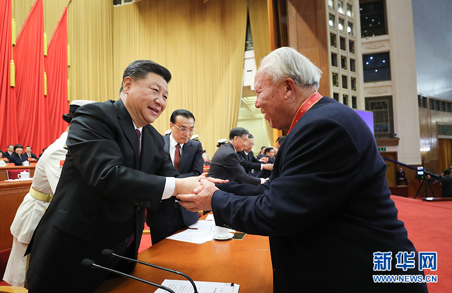 12月18日,慶祝改革開放40周年大會在北京人民大會堂隆重舉行。中共中央總書記、國家主席、中央軍委主席習近平在大會上發(fā)表重要講話。這是習近平等為獲得中國改革友誼獎章人員代表頒獎。 新華社記者 鞠鵬 攝