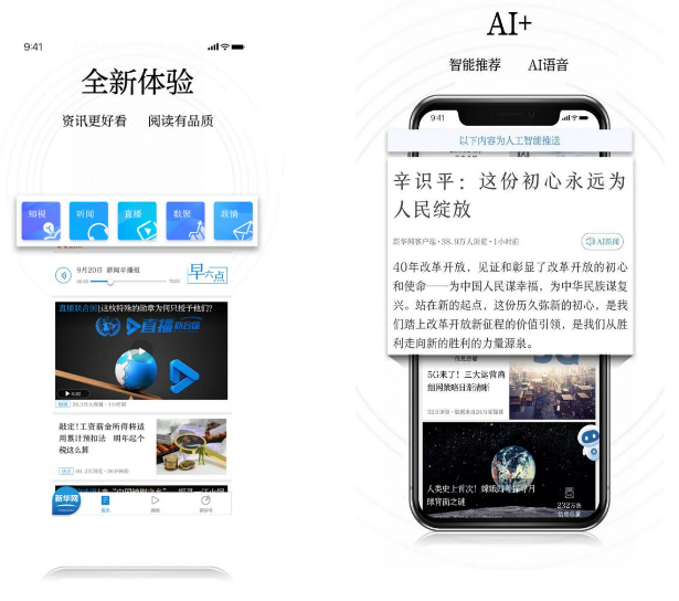 “AI+”賦能內容生產,精準觸達用戶。升級后的客戶端新技術應用更加強大,大量使用人工智能、大數據等前沿技術,整合行業頂級的AI智能技術來服務于內容生產創作和用戶體驗優化。新版頁面采用大量全新的設計理念和技術應用,新穎酷炫的呈現令人耳目一新;首創融合正能量算法的智能推薦技術,實現品質內容的精準推送;采用基于深度神經網絡的新一代AI智能語音合成引擎,可實現任意文字快速轉換為仿真人語音,合成效果達到國內領先水平。